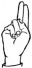 На ћирилици написано ПАУН СЕБИЋ састоји се из 9 слова [?]. Исписано ћириличном једноручном азбуком за глувонеме: